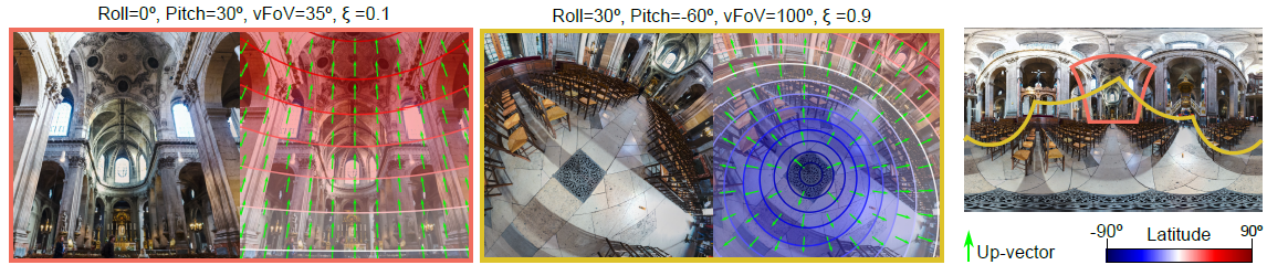 - 360° 이미지에서 다양한 roll, pitch, vFoV, ξ를 샘플링하여 crop하고, PF-US 맵을 생성하는 방식