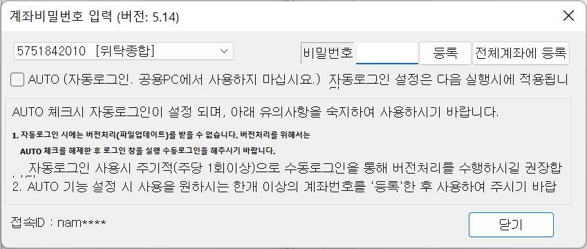 키움 ID / 비밀번호 재설정은 web에서 할수 있다. 이후 자동로그인 설정에서 필요로하는 비밀번호는, 계좌 비밀번호이다. (4~8자리 숫자)