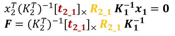 F: fundamental matrix. image point를 이용한 epipolar constraint 더보기fundamental matrix 유도시, P / x / projection matrix의 transpose 관계 (참조)