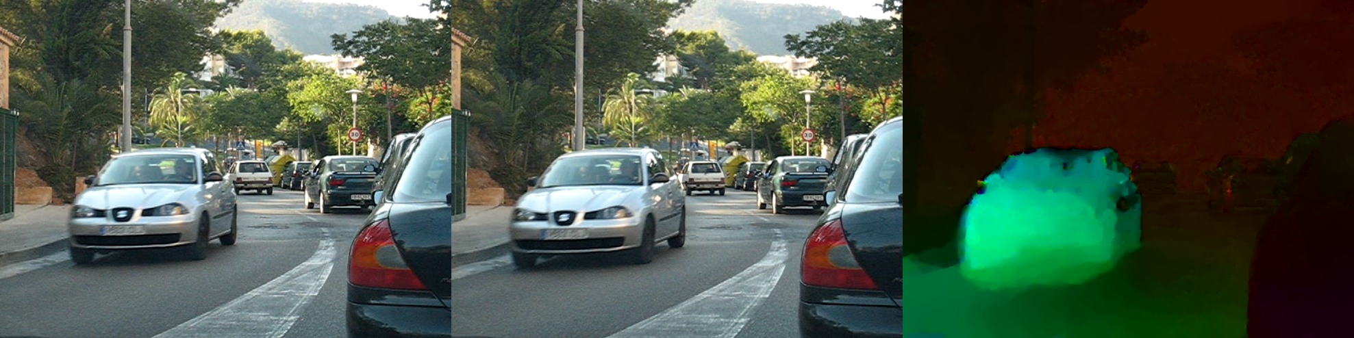 frame2를 frame1으로 warping한 결과. frame1과 거의 유사하다. (disoccluded region은 어쩔 수 없지만..) Reference